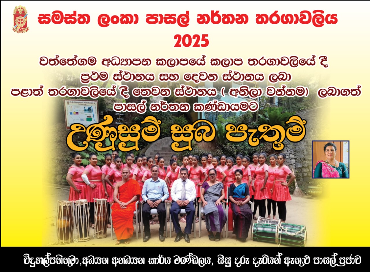 හිස දැනුමෙන්ද හද යහපත් ආකල්පයෙන්ම දෑත නිර්මාණශීලී කුසලතාවෙන්ද පිරිපුන් දරු පරපුරක් සමාජයට දායාද කරලීම