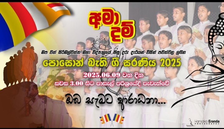2025-06-09 දින පෙ.ව 3.00 සිට  භක්තිගීත වැඩසටහනක් විදුහලේ දී පැවැත්වේ